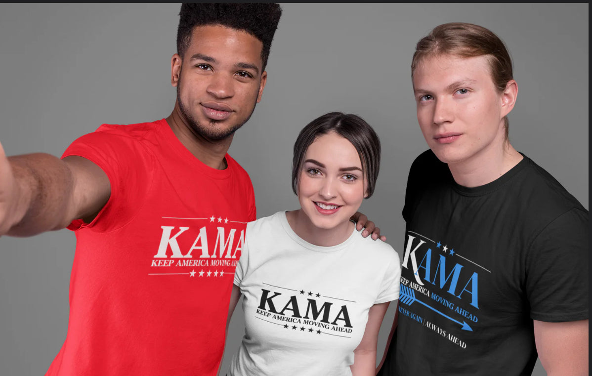 Join the KAMA KEEP AMERICA MOVING AHEAD™ Evolution. Our exclusive KAMA merchandise embodies the spirit of this forward-looking vision for America. Every purchase contributes to a brighter future for ALL Americans. Join the energy that propels progress, unity, and the promise of a better tomorrow. America’s prosperity is ALWAYS AHEAD!